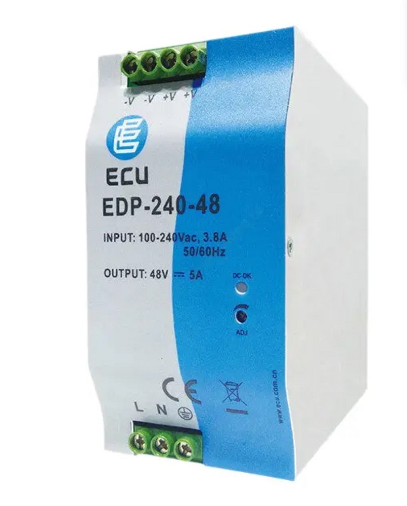 Входное напряжение: 85В~264В (AC) / 90В~370В (DC); выходное напряжение: 48В(DC), регулируется в диапазоне 44-52В(DC); ток нагрузки: 5А; рабочая температура: -40°С~+70°С; монтаж на DIN-рейку.